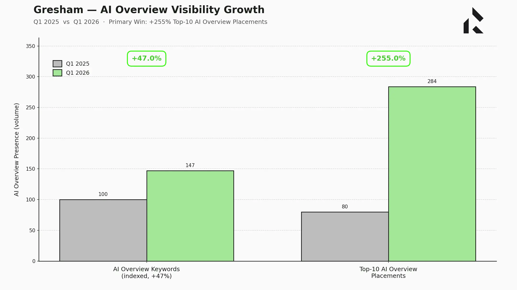 GreshamTech: How We Grew AI Overview Visibility by 255% in Top 10 Placements